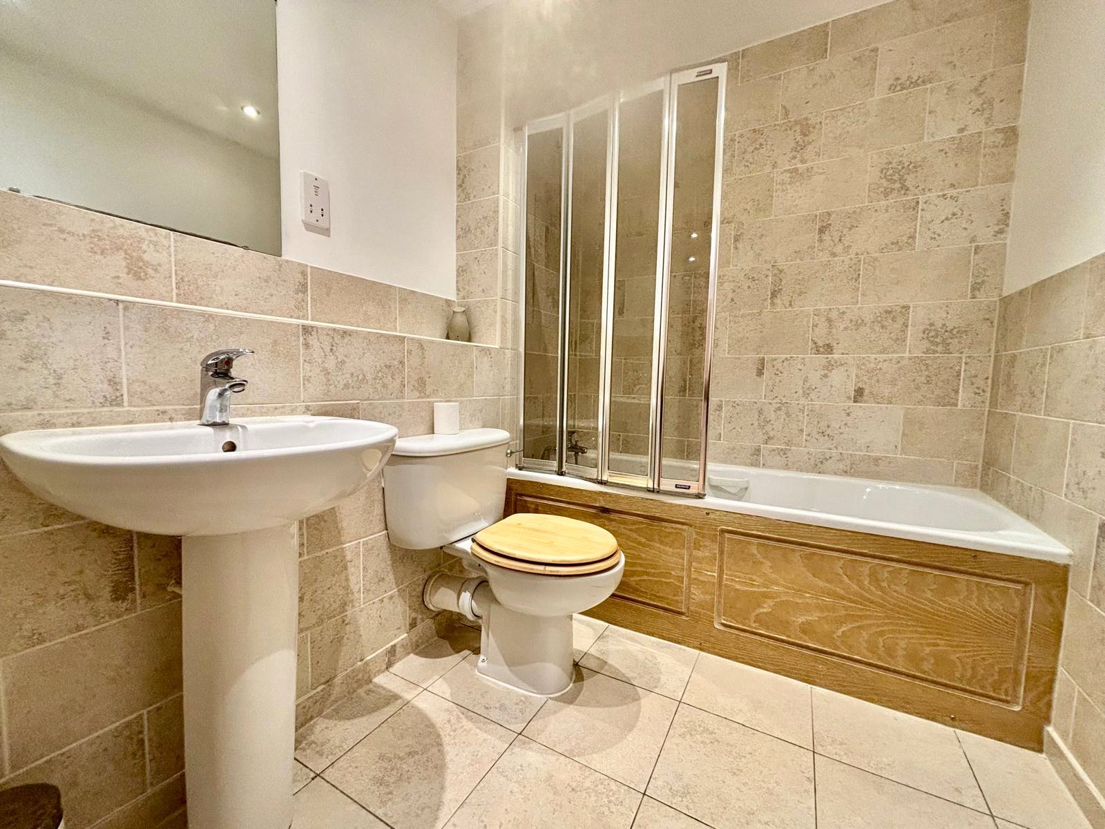 There is a second double bedroom and family bathroom with panelled bath with shower and glass screen over, pedestal wash hand basin and low level w/c.